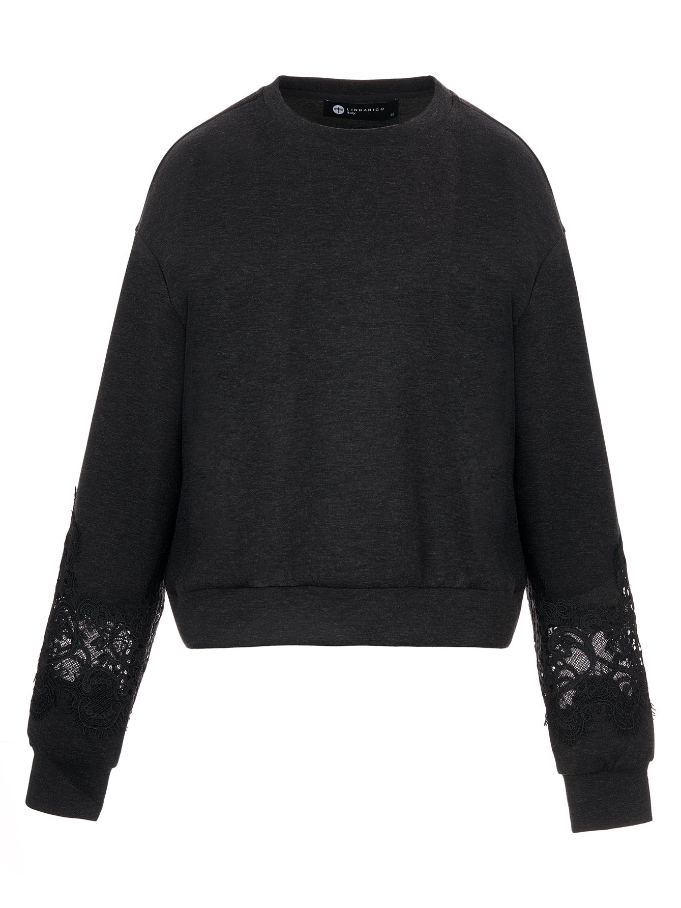 *袖口上方運用同色精緻蕾絲拼接交疊,使鏤空與立體線條交錯,讓袖身呈現更豐富的工藝層次。