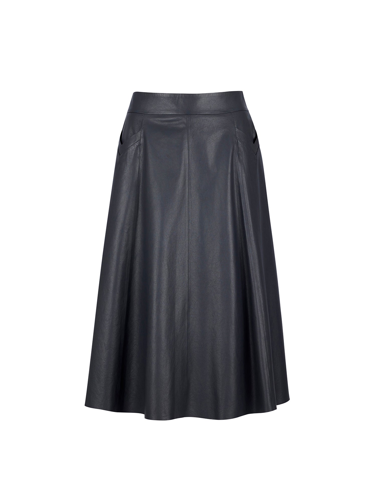 *A字中長裙版型,腰部合身、裙身自然展開,修飾腿型比例俐落。