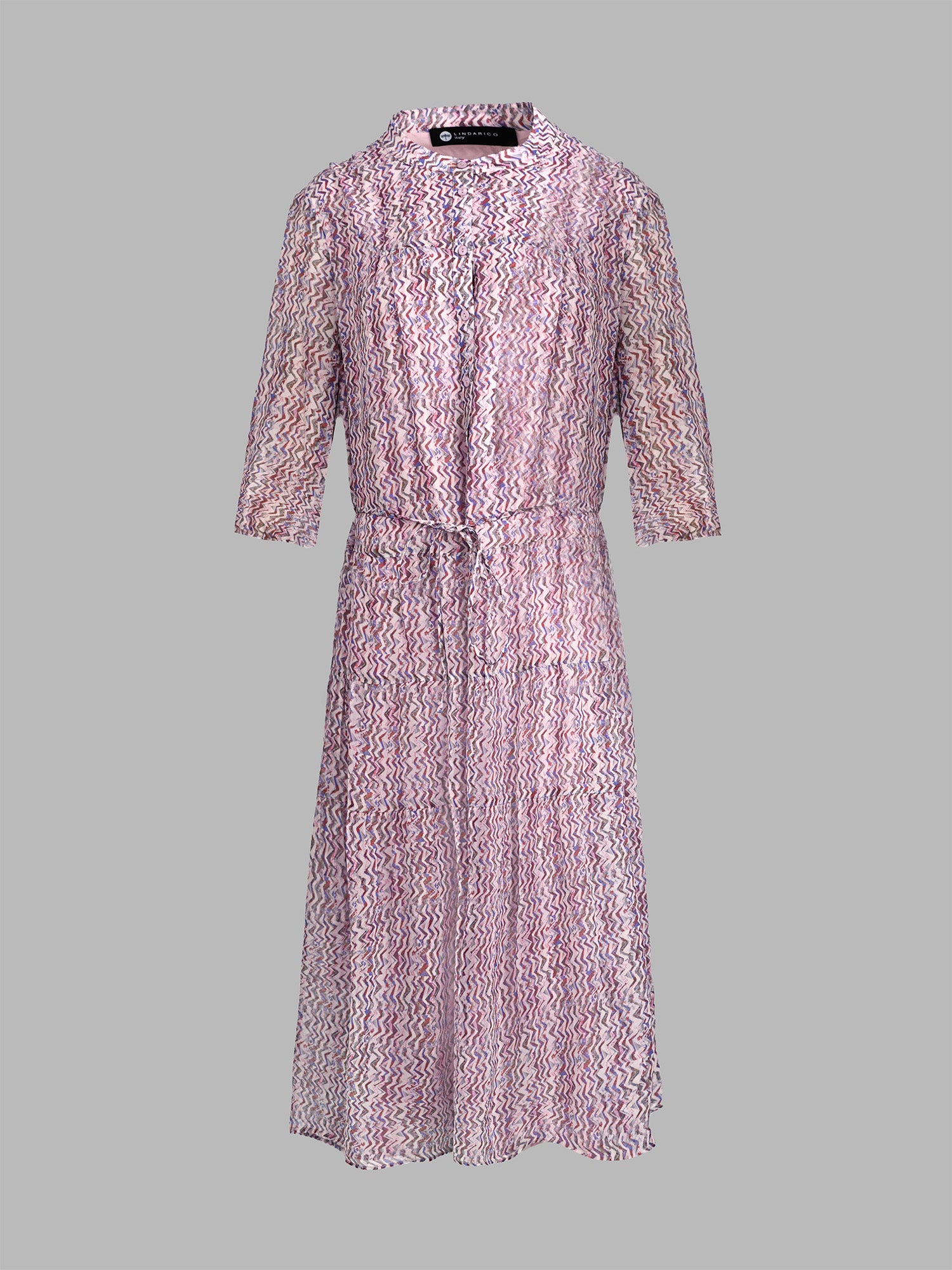 *粉嫩色調波浪紋印花,活潑柔和,搭配細腰繩可自由調整腰身,裙襬自然垂墜展現優雅感。