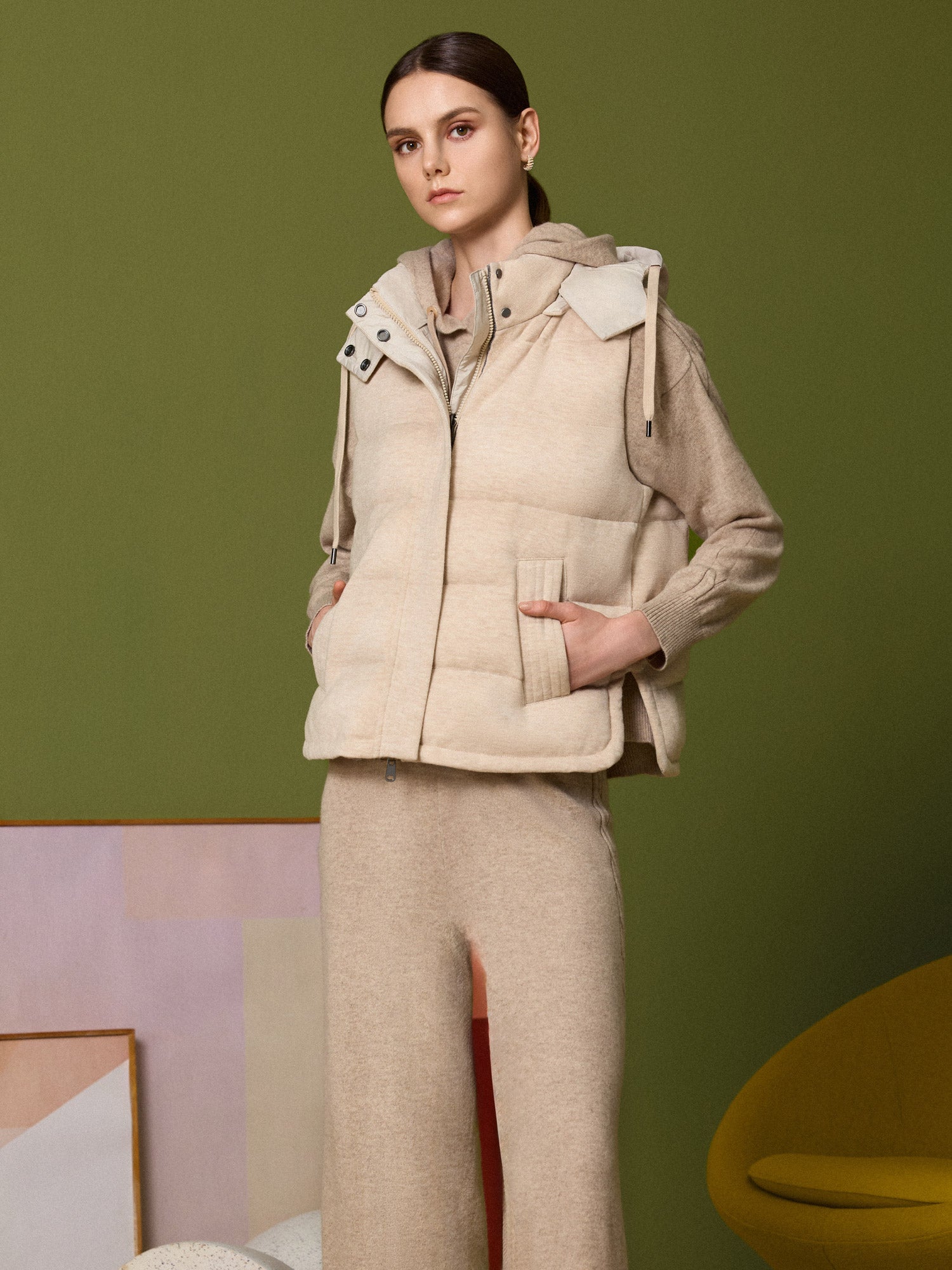 *100%羊絨,質地細緻柔軟,纖維飽滿豐厚,能保持脖頸與肩膀區域的溫暖。