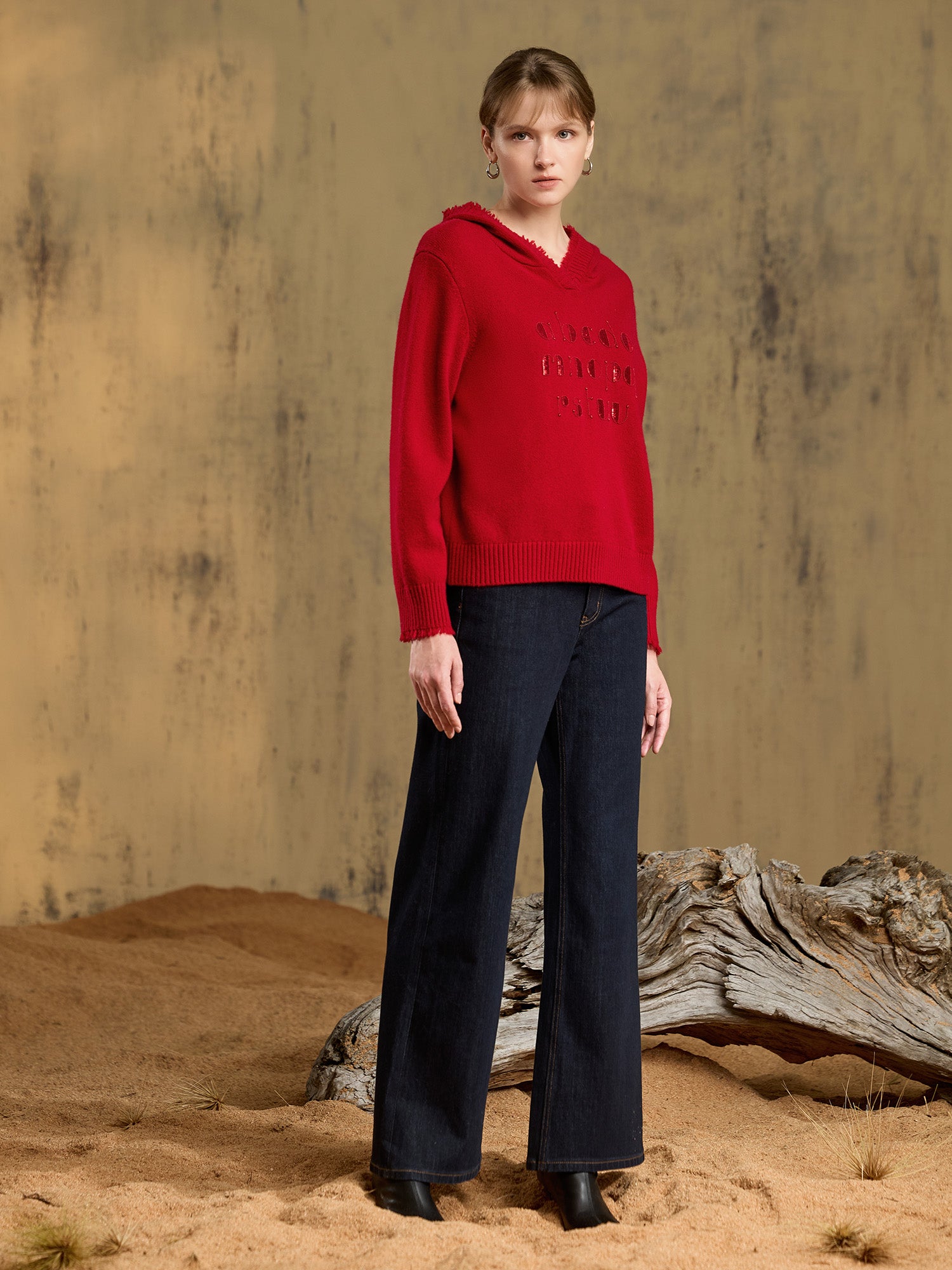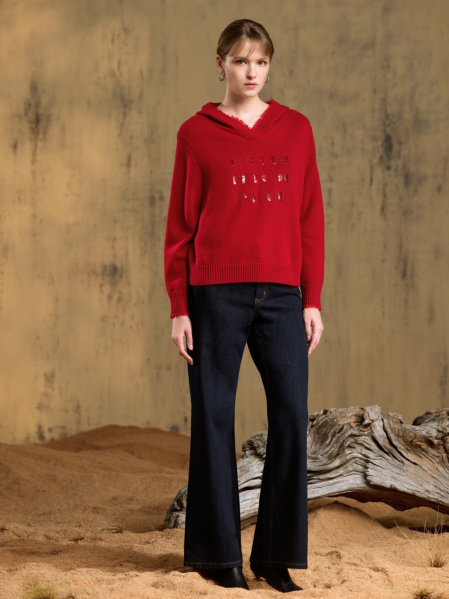 *微寬鬆連帽針織上衣,融合V型領口,可顯臉頸纖細;直筒剪裁修飾身形同時保有舒適度,胸前亮片字母打造個性亮點。