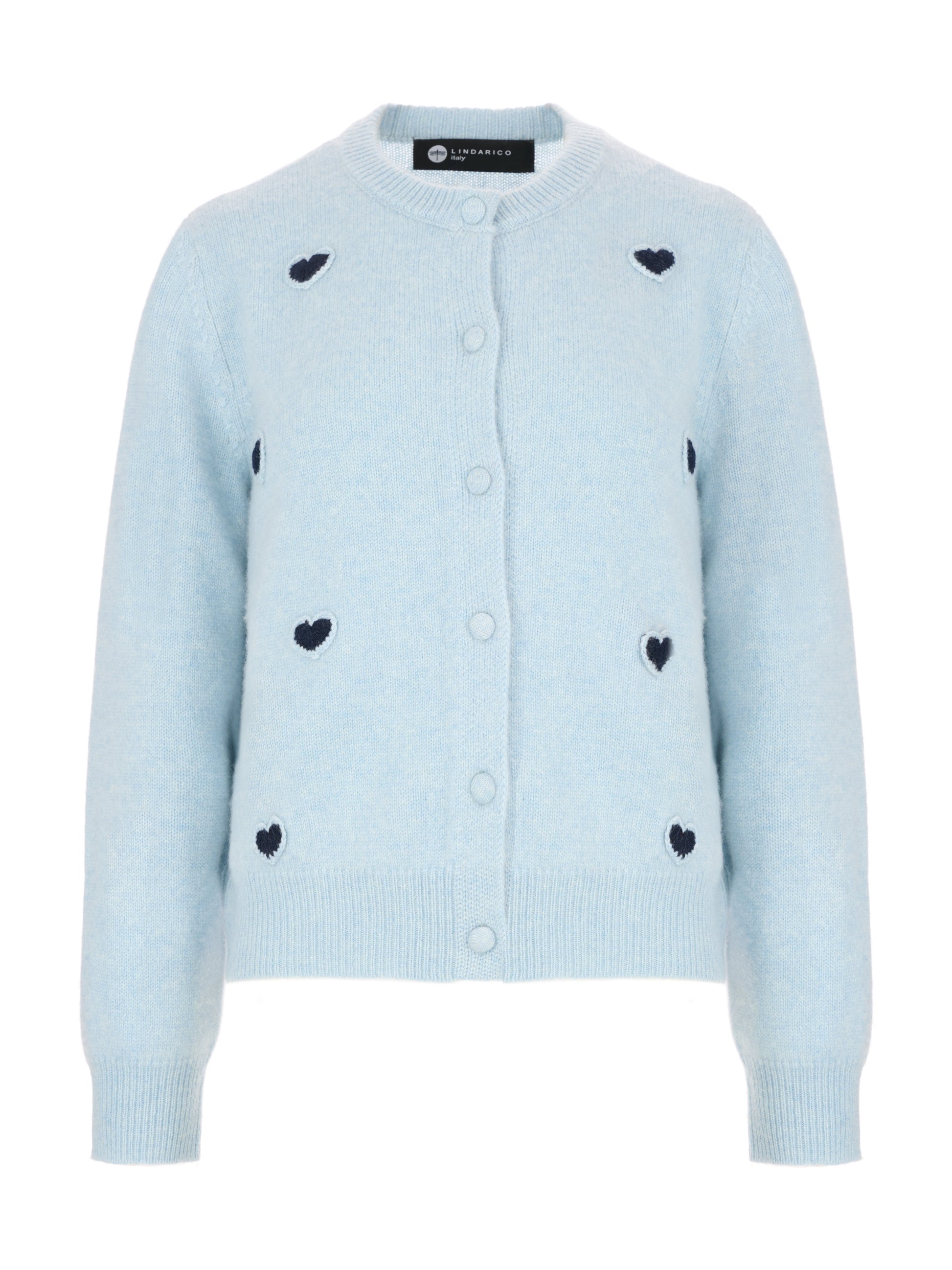 *經典圓領針織外套,線條簡潔自然修飾身形;衣身點綴撞色小愛心,以立體刺繡方式呈現,低調卻富有辨識度。