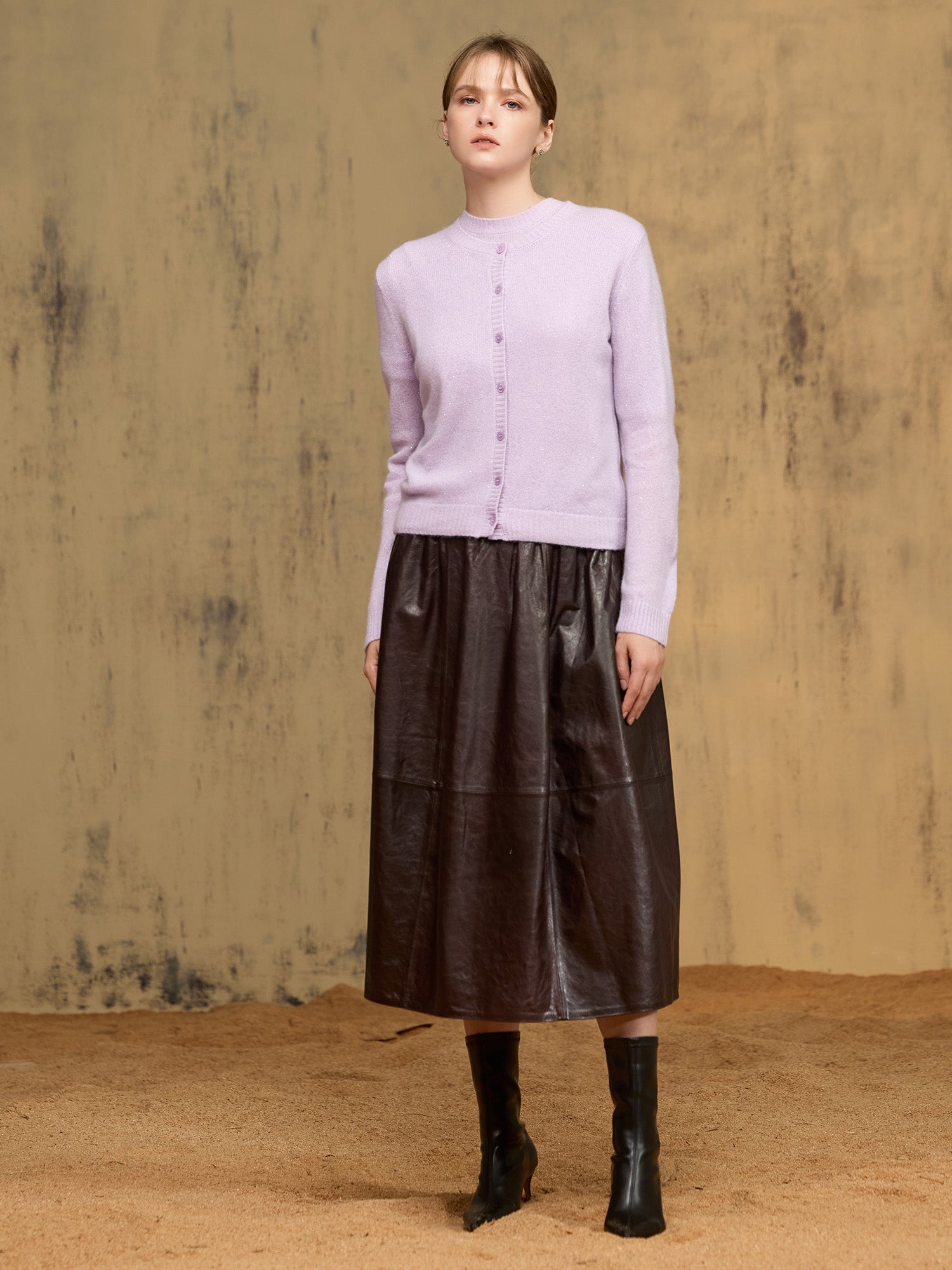 *圓領開襟設計搭配同色包釦,呈現柔和典雅的視覺比例。細緻羅紋收邊修飾輪廓,整體剪裁合身卻不緊貼,氣質恬雅。