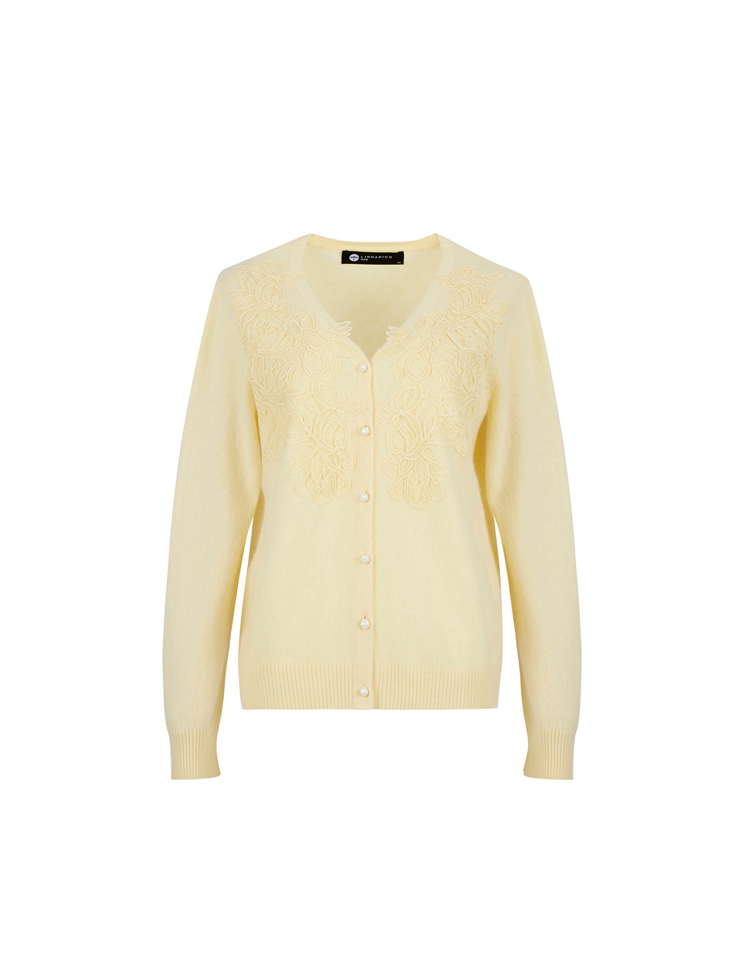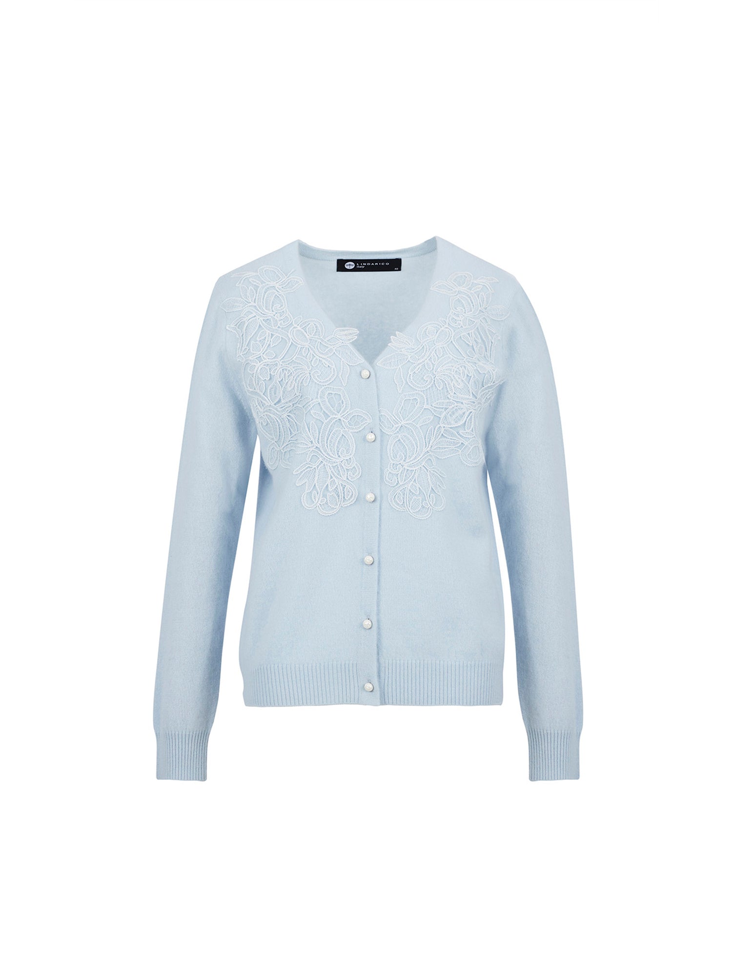*V領開襟設計十分修飾頸部線條,胸口以立體蕾絲繡花延展成花型構圖,細節精緻,柔中帶有層次立體感,氣質典雅具有女人味。