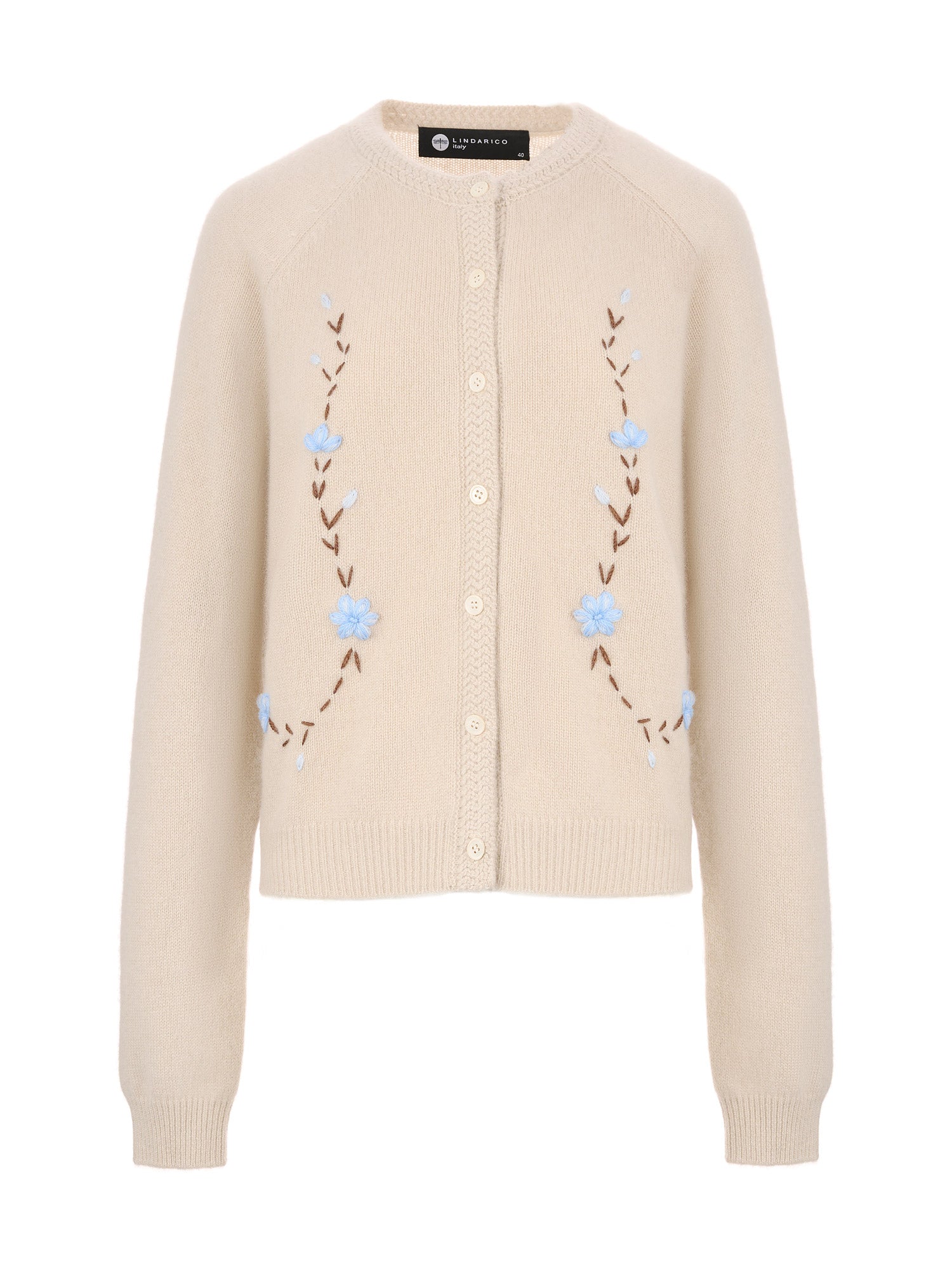 *無肩線設計使肩部更柔和順身,上身視覺輕盈不厚重。前片以立體繡花點綴,線條細緻、花朵有層次感,增添柔雅質感。同色織釦低調融合,呈現更完整的純淨氛圍。