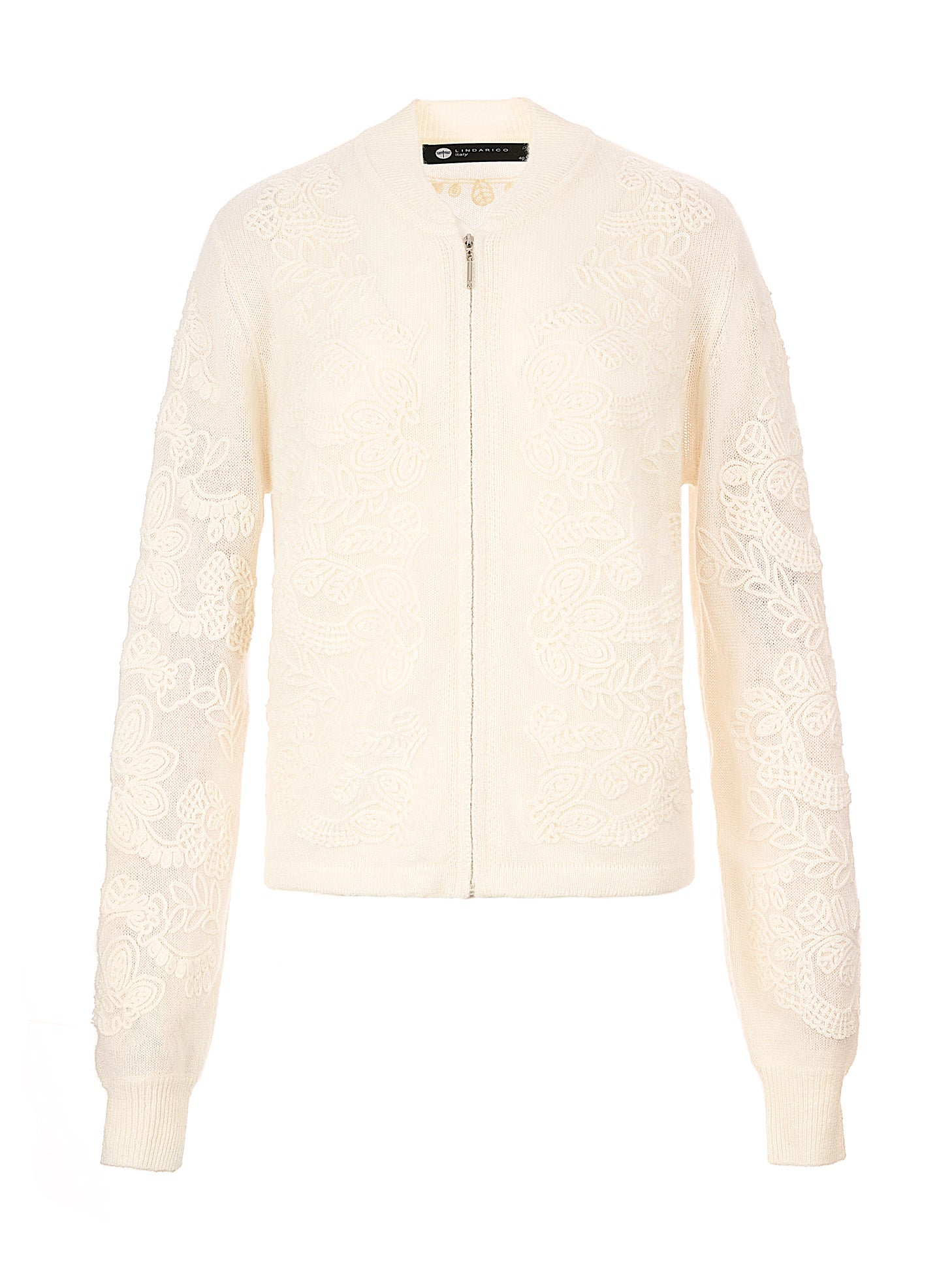 *微V羅紋領口拉鍊針織外套,十分輕軟,整件以立體織花結構呈現紋理層次,線條視覺繁複、手感立體細膩,相當精緻。