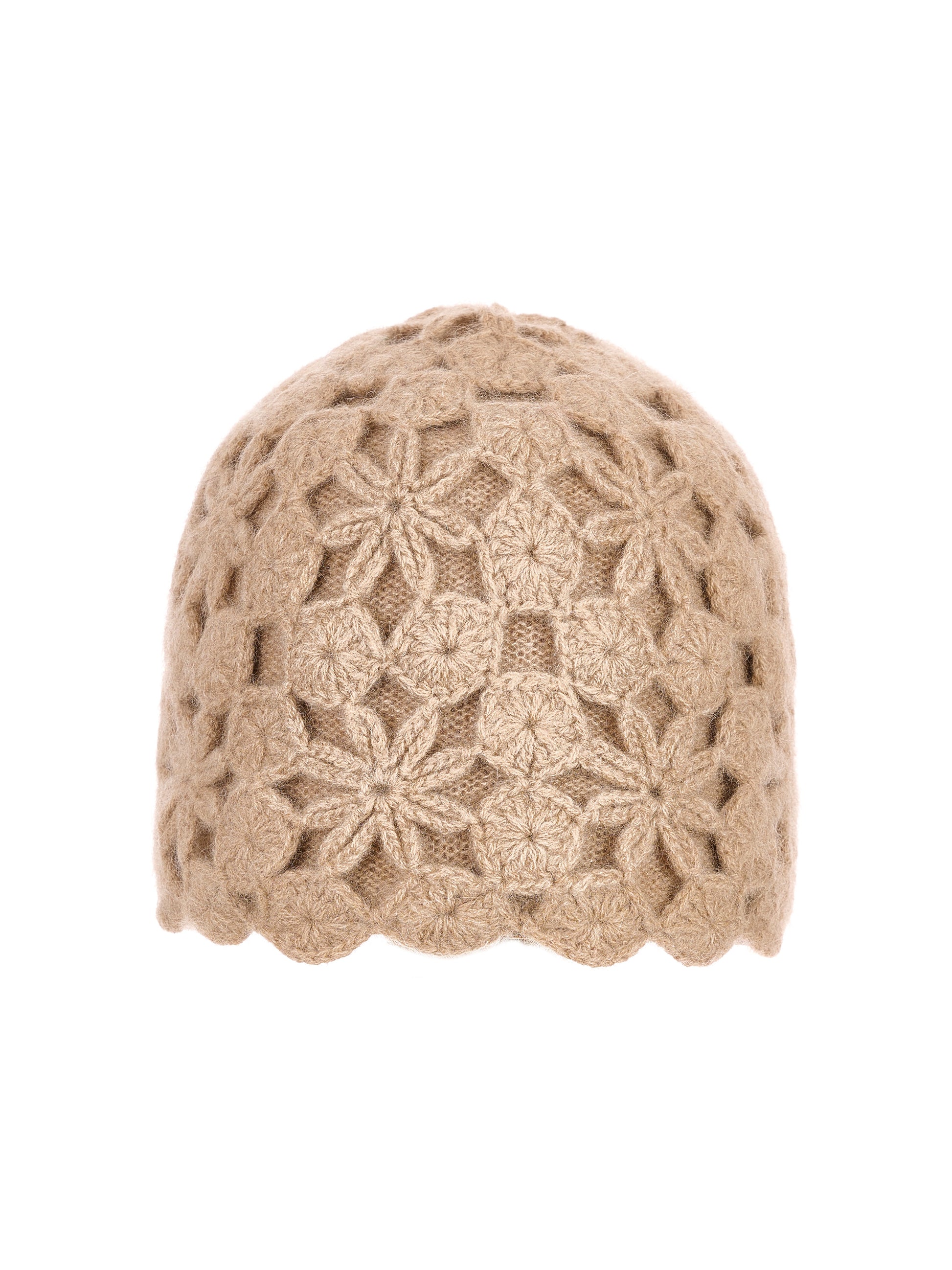 *精緻立體花朵織紋,花瓣輪廓交錯形成自然陰影輪廓,充滿手工感層次,造型柔美卻不厚重,貼合頭型同時保持舒適空間。