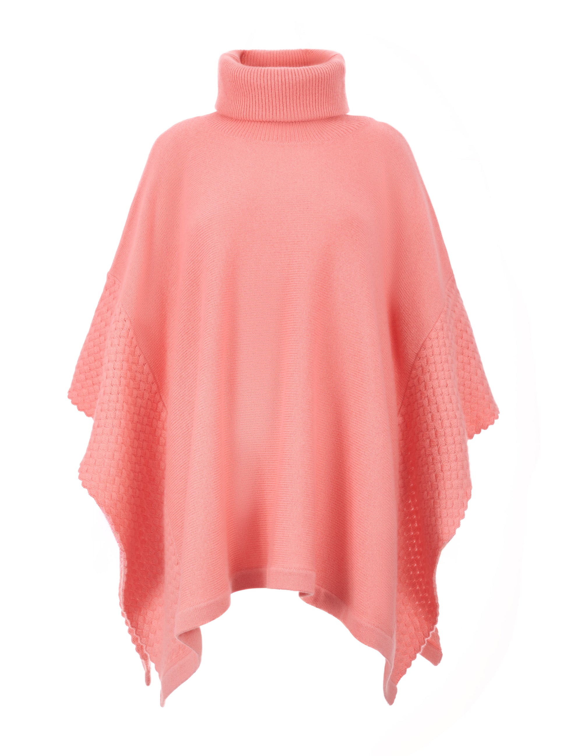 *斗篷式剪裁自然垂墜,修飾肩背與手臂線條,側邊針織紋理細膩有層次,行走間展現柔和流動感。高領設計包覆頸部線條,提升整體保暖度。