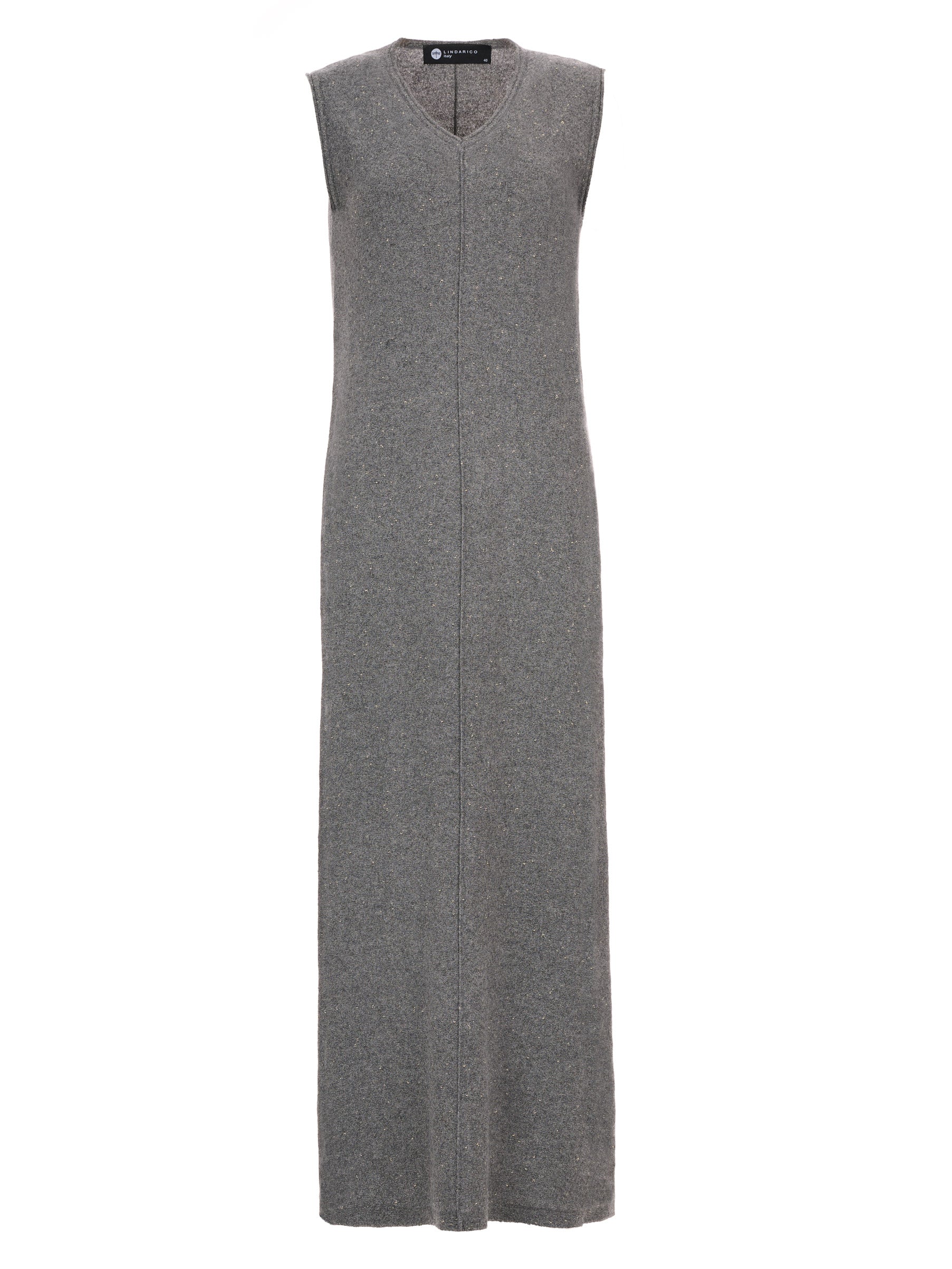 *無袖直筒剪裁沿著身形往下延伸,呈現輕盈筆直比例。V領線條拉開上半身視覺,使整體更修順。