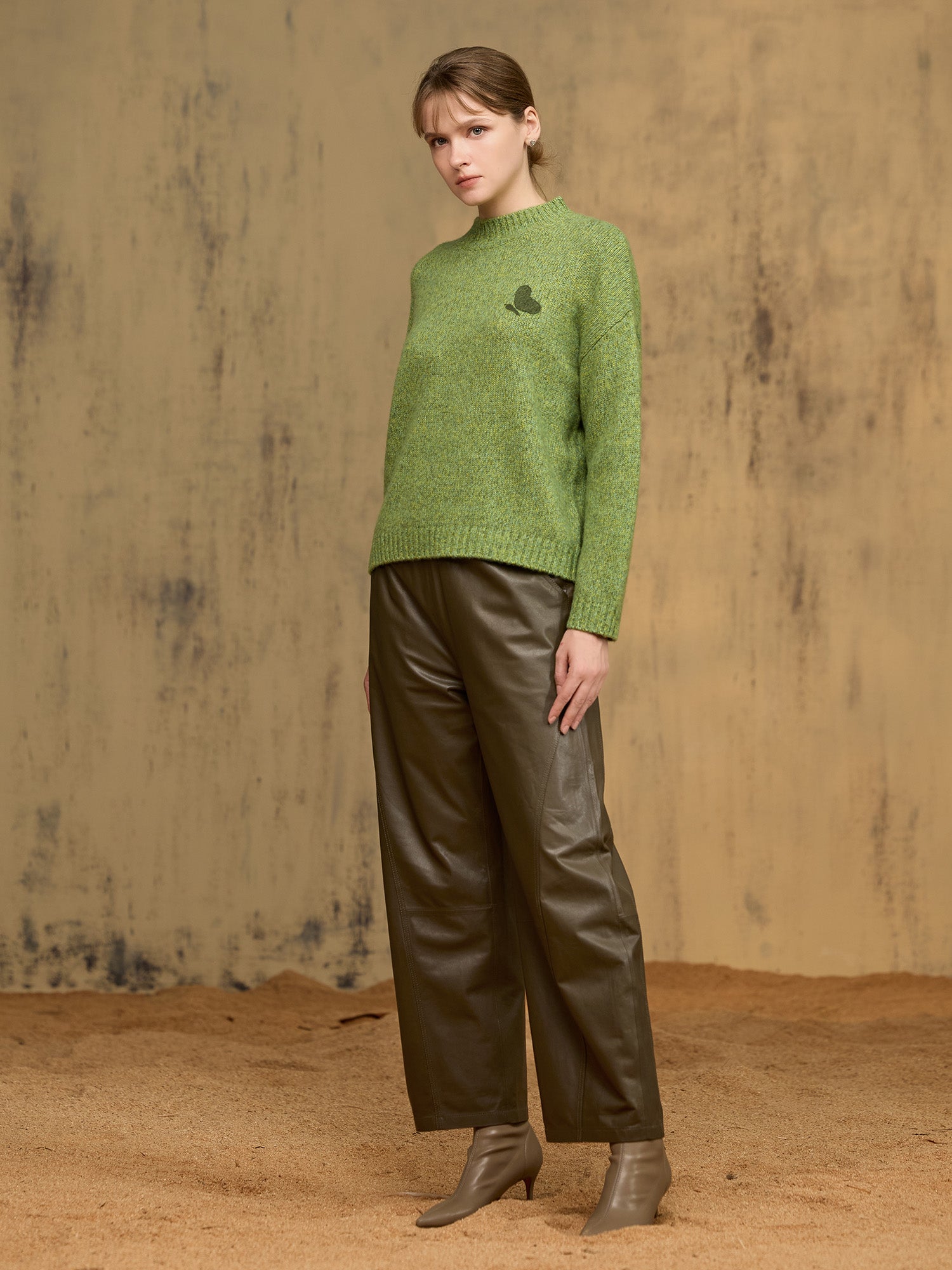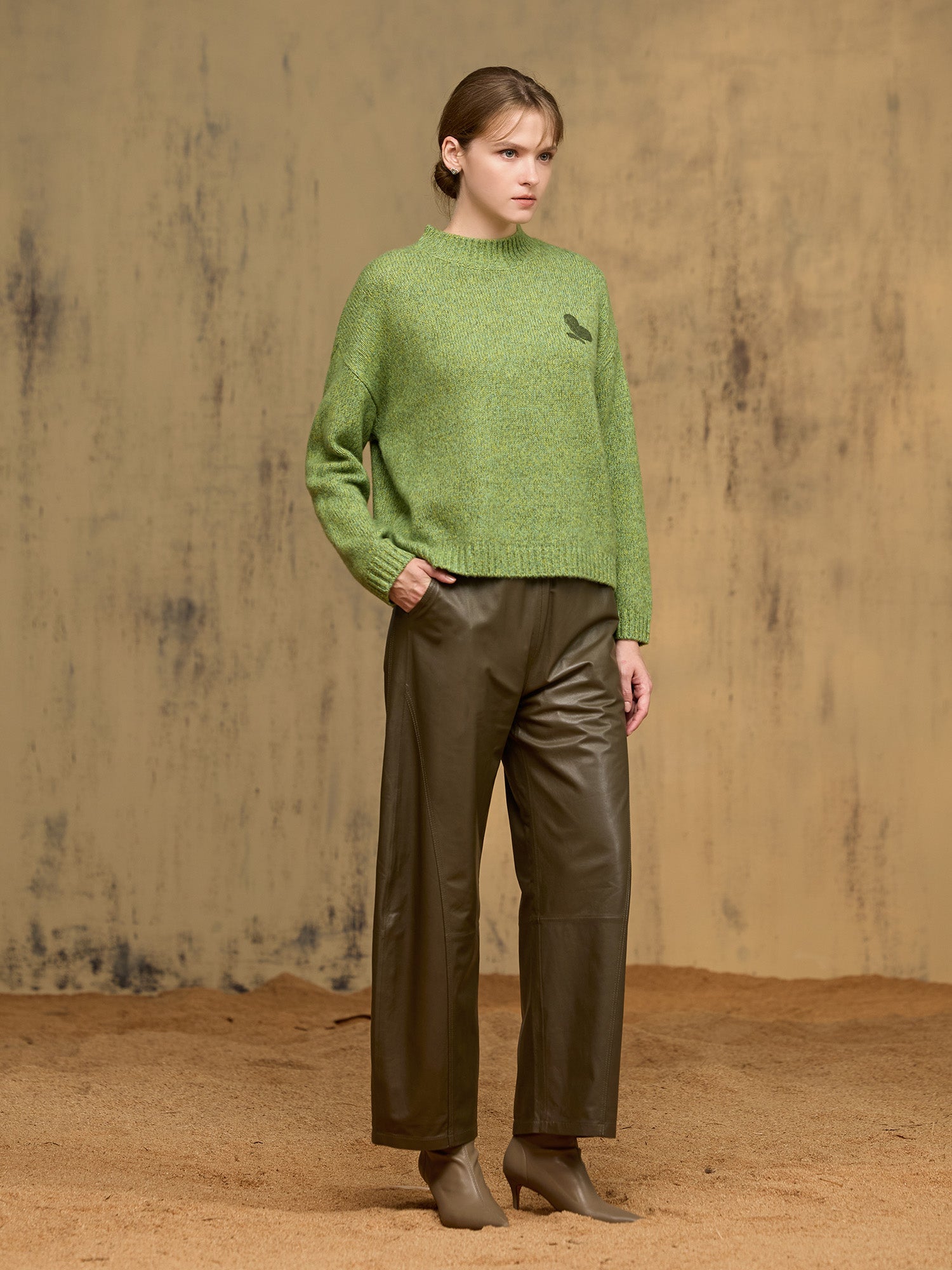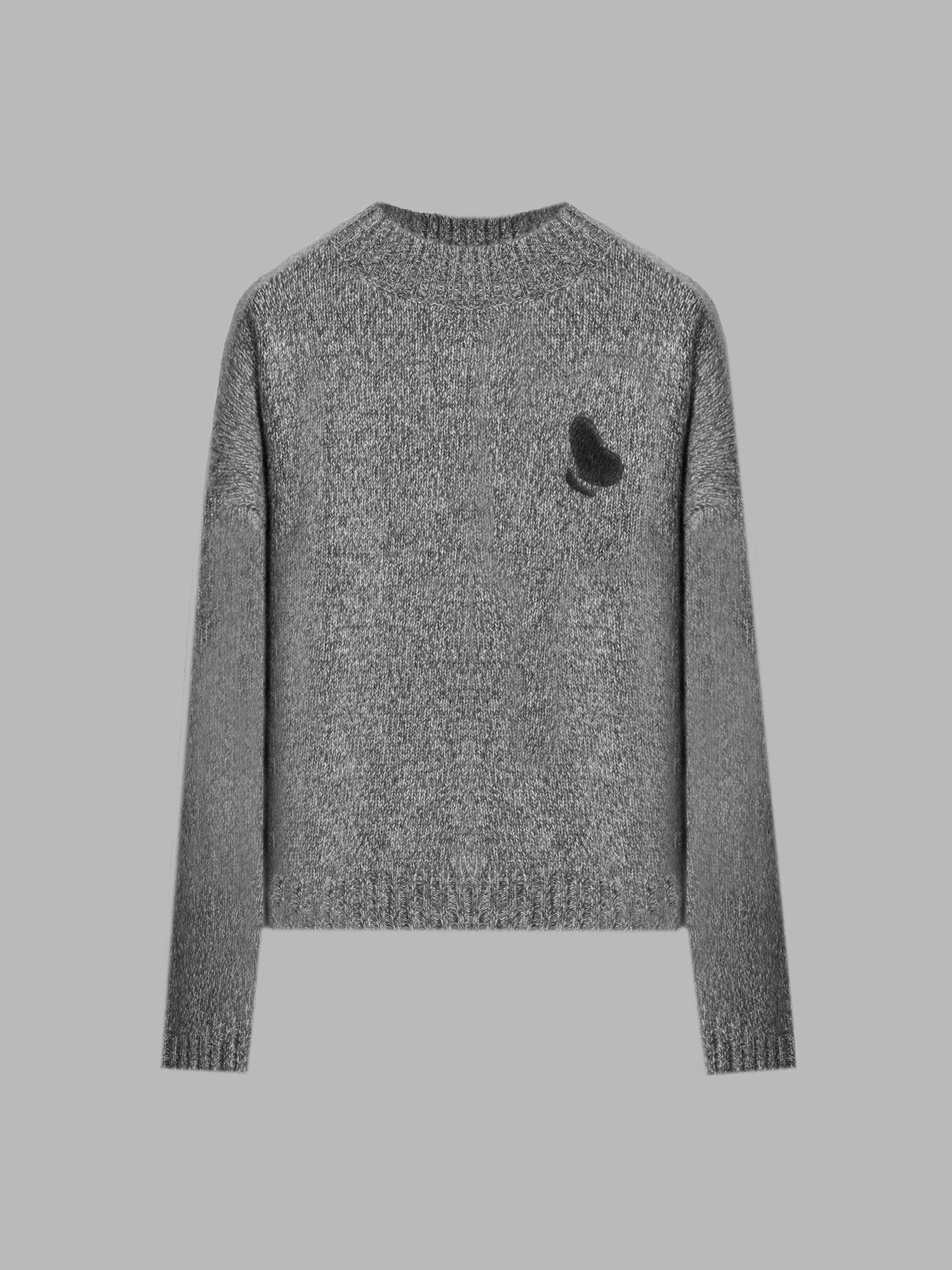*寬鬆落肩剪裁上衣,混色針織有自然霜感,對於身形線條的修飾更柔和。較寬的羅紋圓領與袖口,輔以下擺自然垂墜,營造隨性休閒感受。
