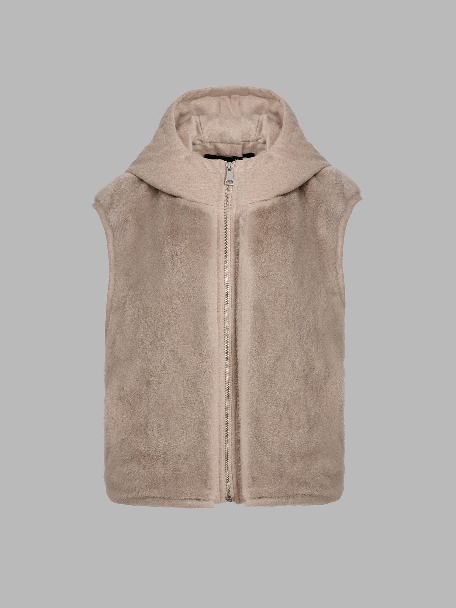 * 100%養殖水貂皮,毛感豐厚細緻平順,光澤自然流動;內層填充鵝絨,絨朵蓬鬆輕盈,保暖度遠勝一般羽絨,同時維持輕盈感受。