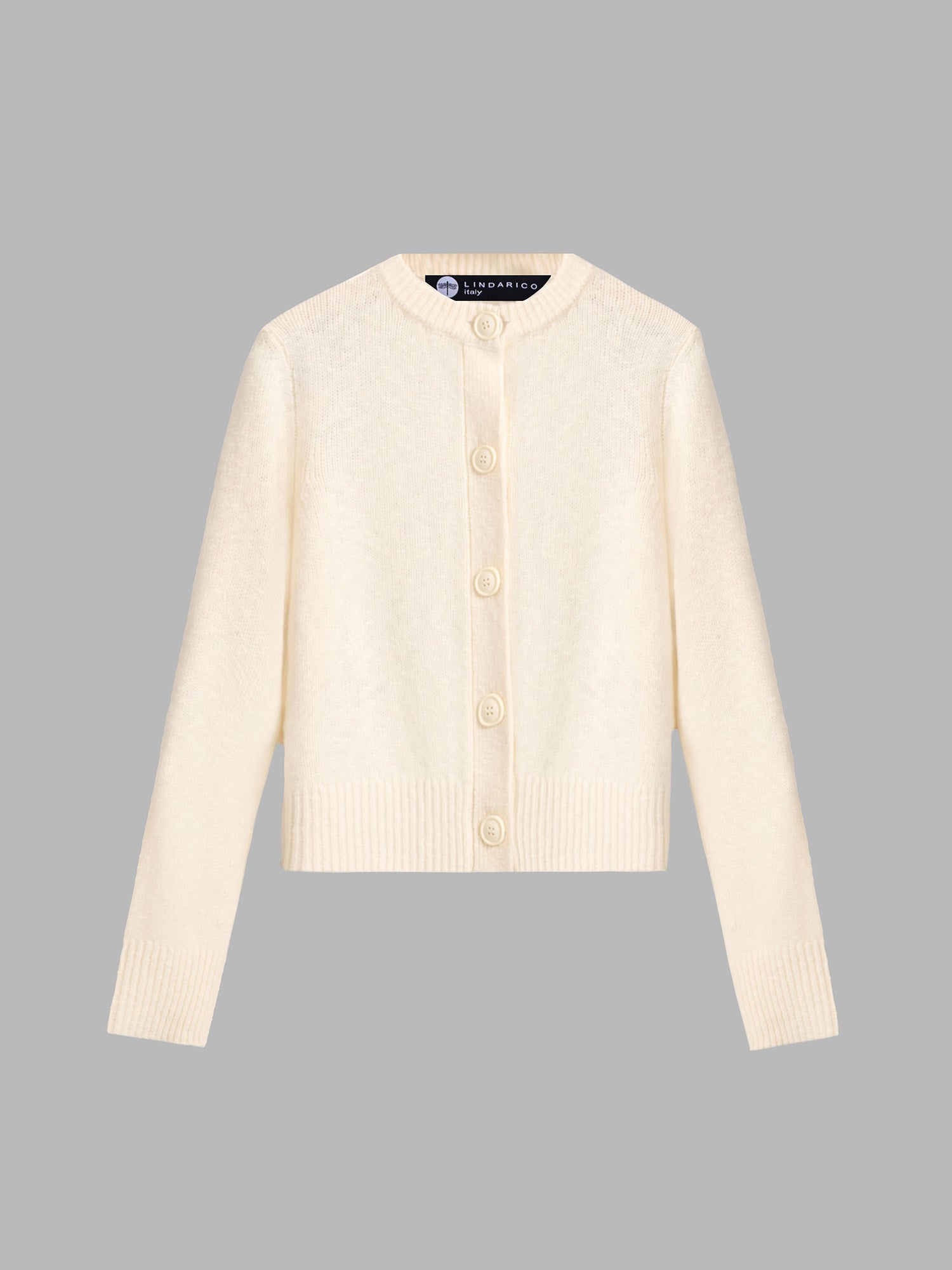 *修身短版圓領針織外套,較寬闊的羅紋收邊勾勒出衣型輪廓,正面大顆粒包邊釦設計,簡約大方穿出溫柔質感。