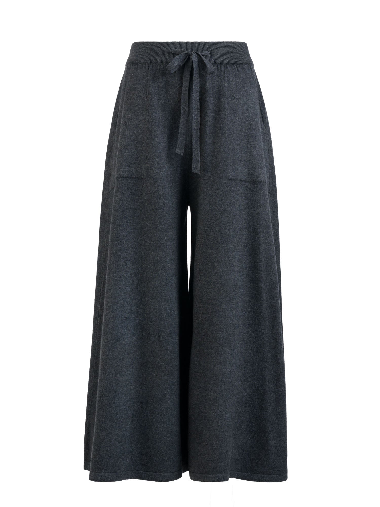 *寬版鬆緊腰頭自然收束腰身,修飾比例同時提升穩定度。如裙襬般寬大的褲身線條,行走間展現流動感,修飾腿型又不影響活動便利,兼具造型感與舒適性。