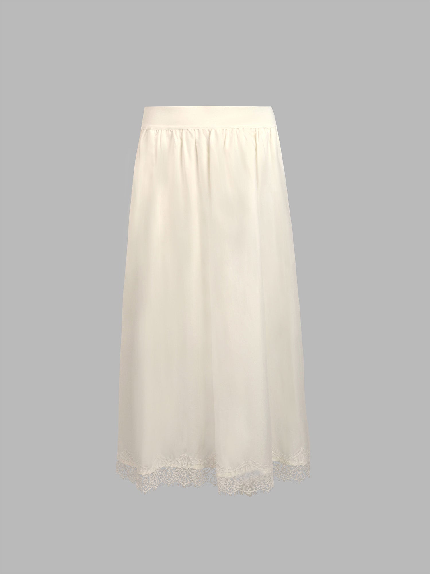 *寬版鬆緊腰頭,穿著穩定服貼不勒腰;下擺波浪形花邊蕾絲收邊,層次分明,細節精緻不繁複,氣質溫柔淡雅。