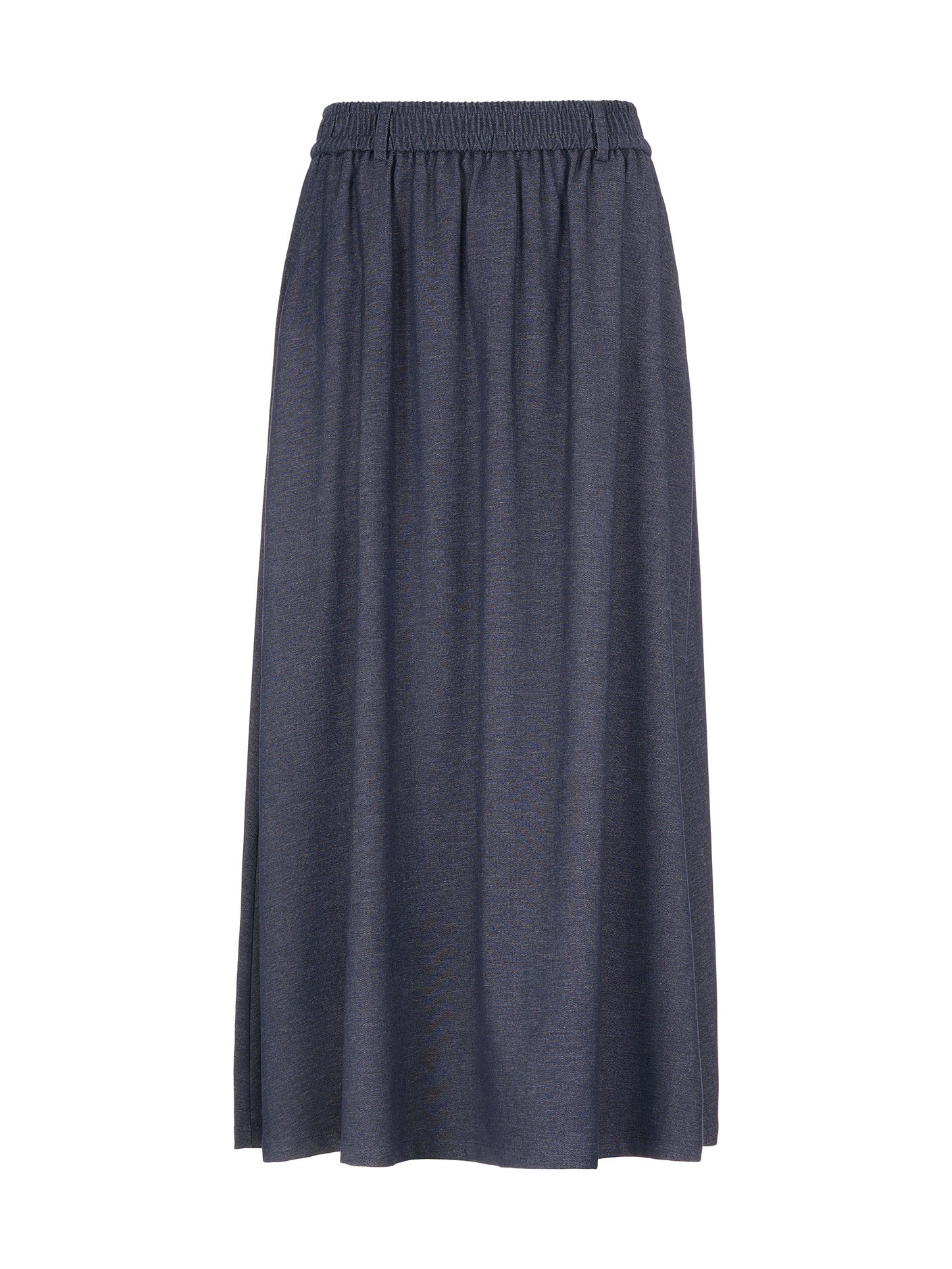*高腰鬆緊設計能自然收束腰身,裙身自腰際直順落下,形成輕微A字弧度,修飾臀腿比例。