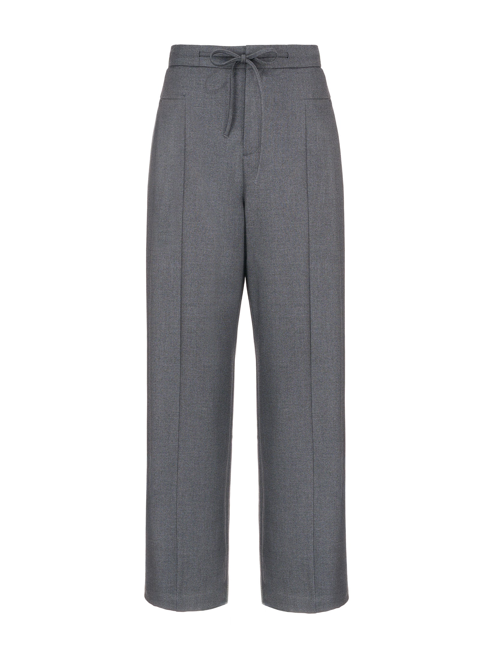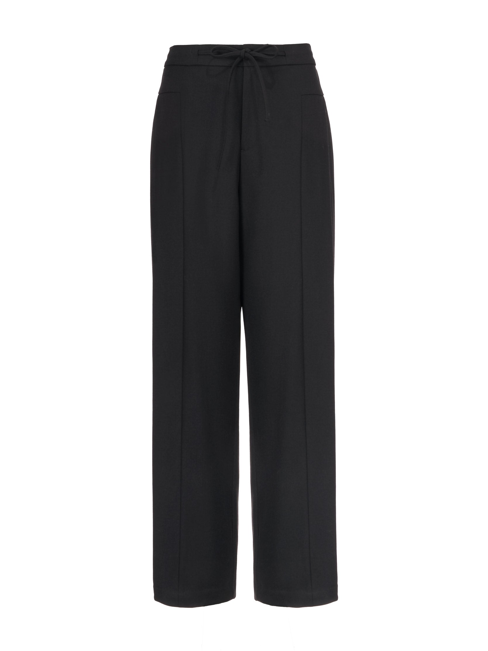 *高腰西裝褲頭穩定腰線位置,搭配抽繩可調節貼合度,在正式輪廓中加入微休閒氣息,穿起來更自在不拘束。